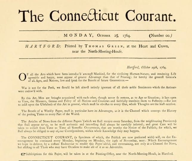 The Hartford Courant is America's longest-running newspaper. Founded way back on October 29, 1764âbefore the U.S. even existed!âit started as the Connecticut Courant and has been publishing nonstop for over 260 years.