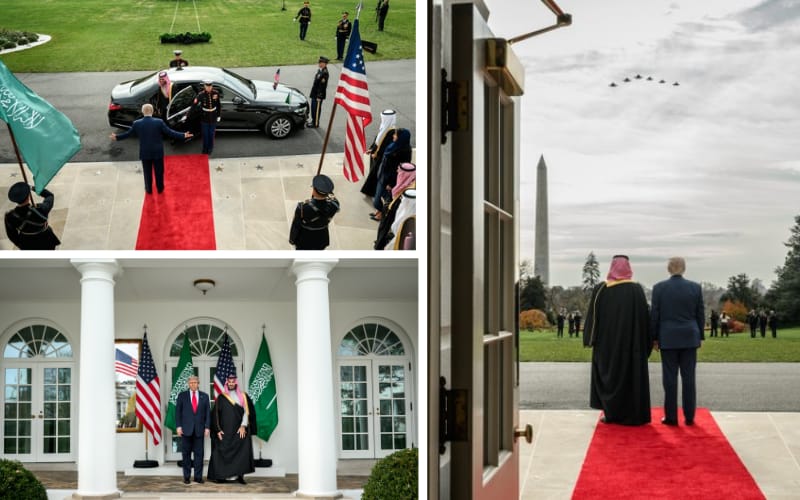 The White House rolled out near–state visit honors for Saudi Crown Prince Mohammed bin Salman—jet flyover, 16-horse color guard, full South Lawn pageantry.