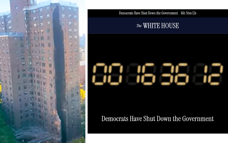 Left: Bronx Tower; Right: Shutdown clock on White House website
