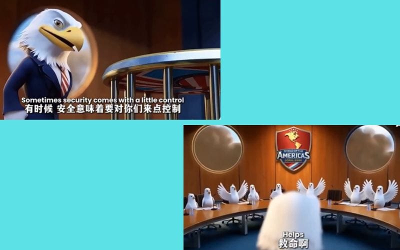 China’s Embassy to the US posted an AI-generated clip to social media. It shows Trump as a bald eagle trapping smaller birds — Latin American nations — under a spiked "Shield of the Americas," growling: "Security comes with some control."