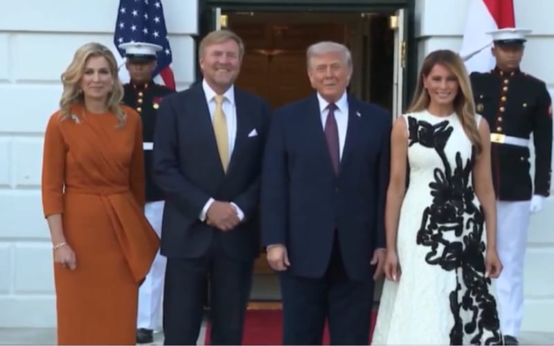 King Willem-Alexander, Queen Máxima, and Prime Minister Rob Jetten spent the night at the White House on April 13 — a rare honor — as part of a three-day working visit to the U.S. covering Philadelphia, Washington, and Florida.